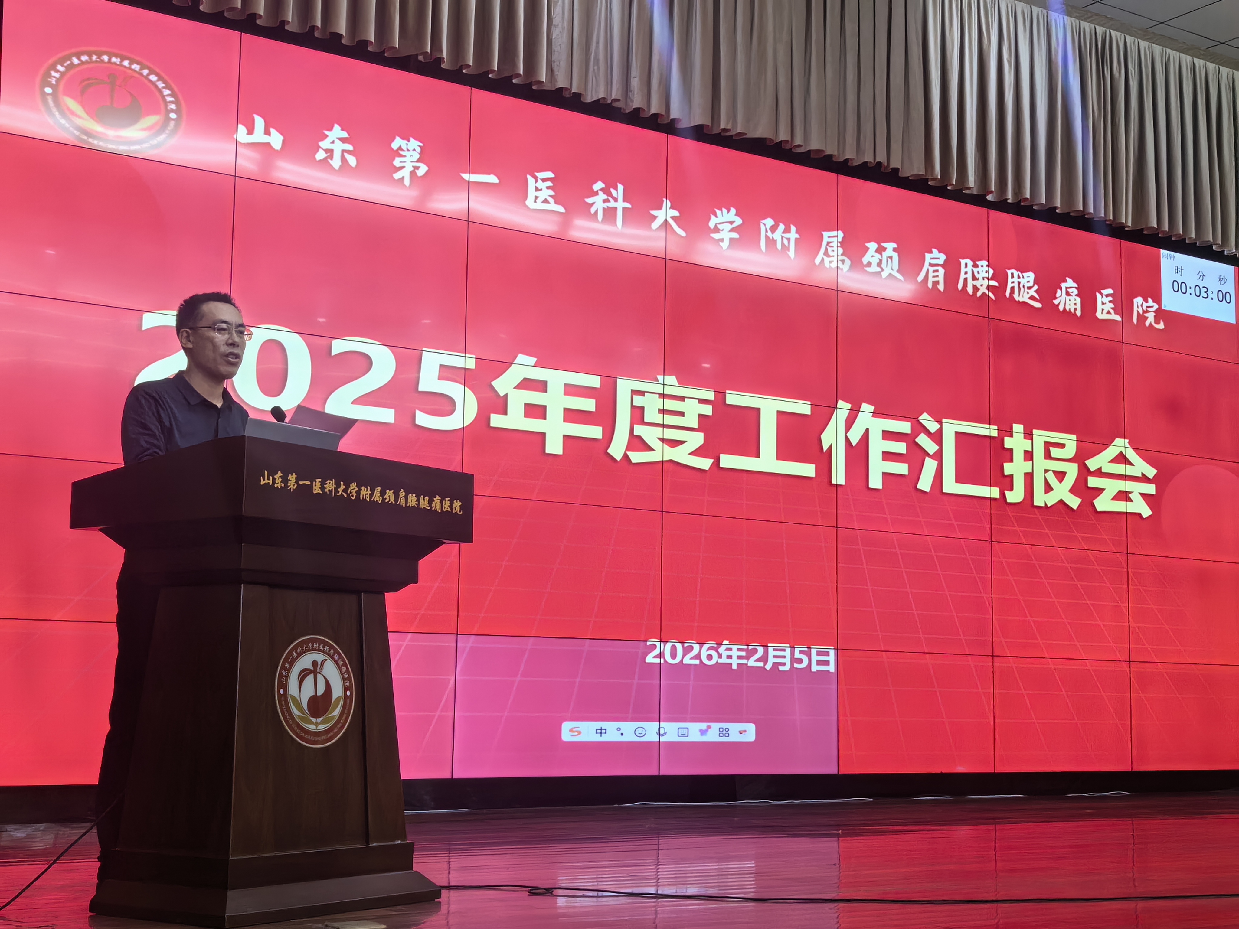 为系统梳理2025年度发展成效,精准剖析现存问题,科学谋划2026年重点任务及 “十五五” 期间发展蓝图,2026年2月5日下午,山东第一医科大学附属颈肩腰腿痛医院2025年度工作汇报会在二楼学术报告厅召开。医院党委书记张洪彬、院长师彬出席会议并讲话,副院长张波主持会议,全体院领导、各科室负责人及职工代表参加会议。