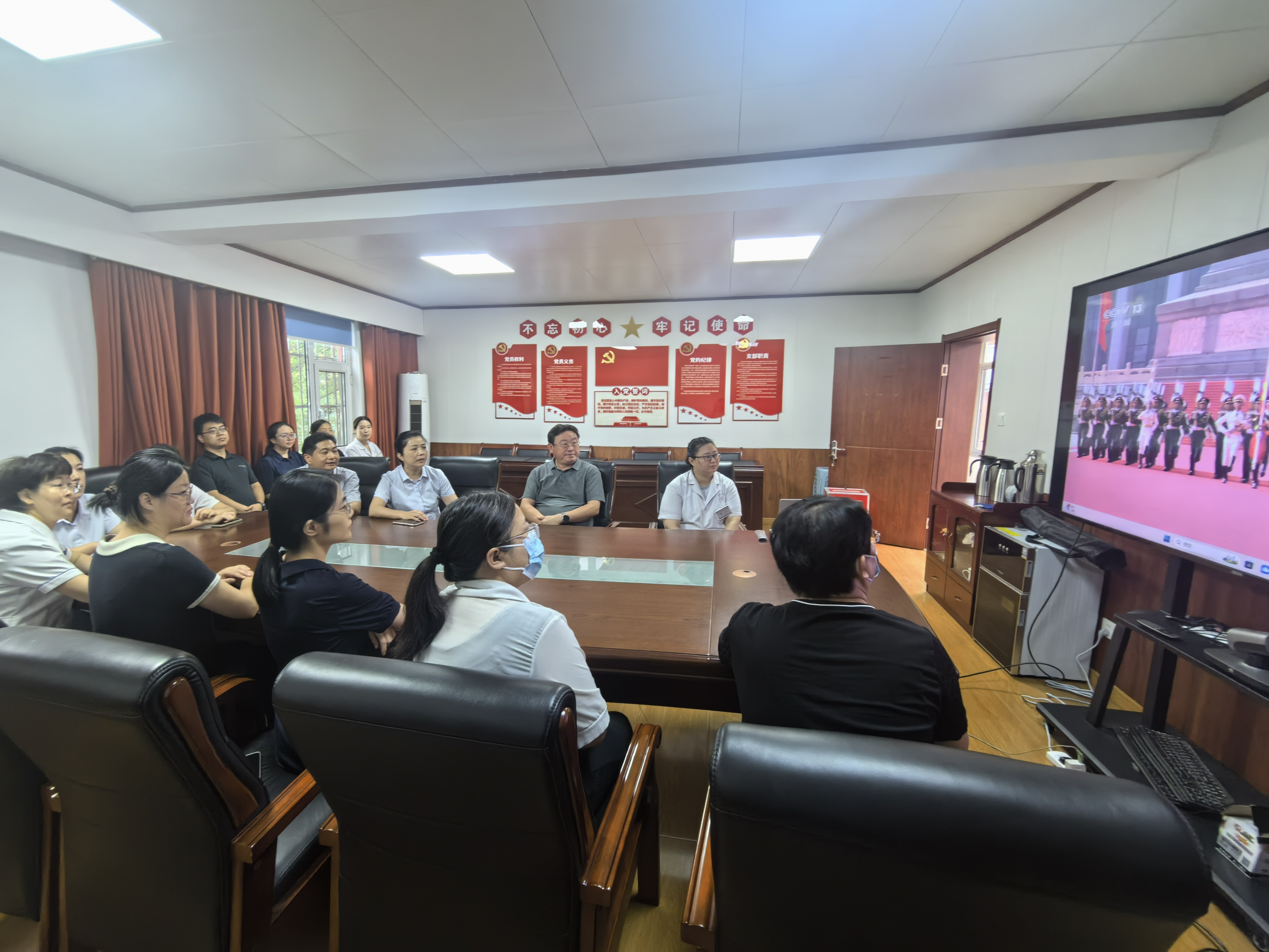 为深切缅怀革命先烈的英勇事迹,大力弘扬伟大爱国主义精神,进一步激发全院干部职工的爱国热情与奋斗豪情,2025年9月3日上午,我院组织部分党员干部职工集中收看纪念中国人民抗日战争暨世界反法西斯战争胜利80周年大会直播,共同回顾那段波澜壮阔的历史,汲取奋勇前进的力量。