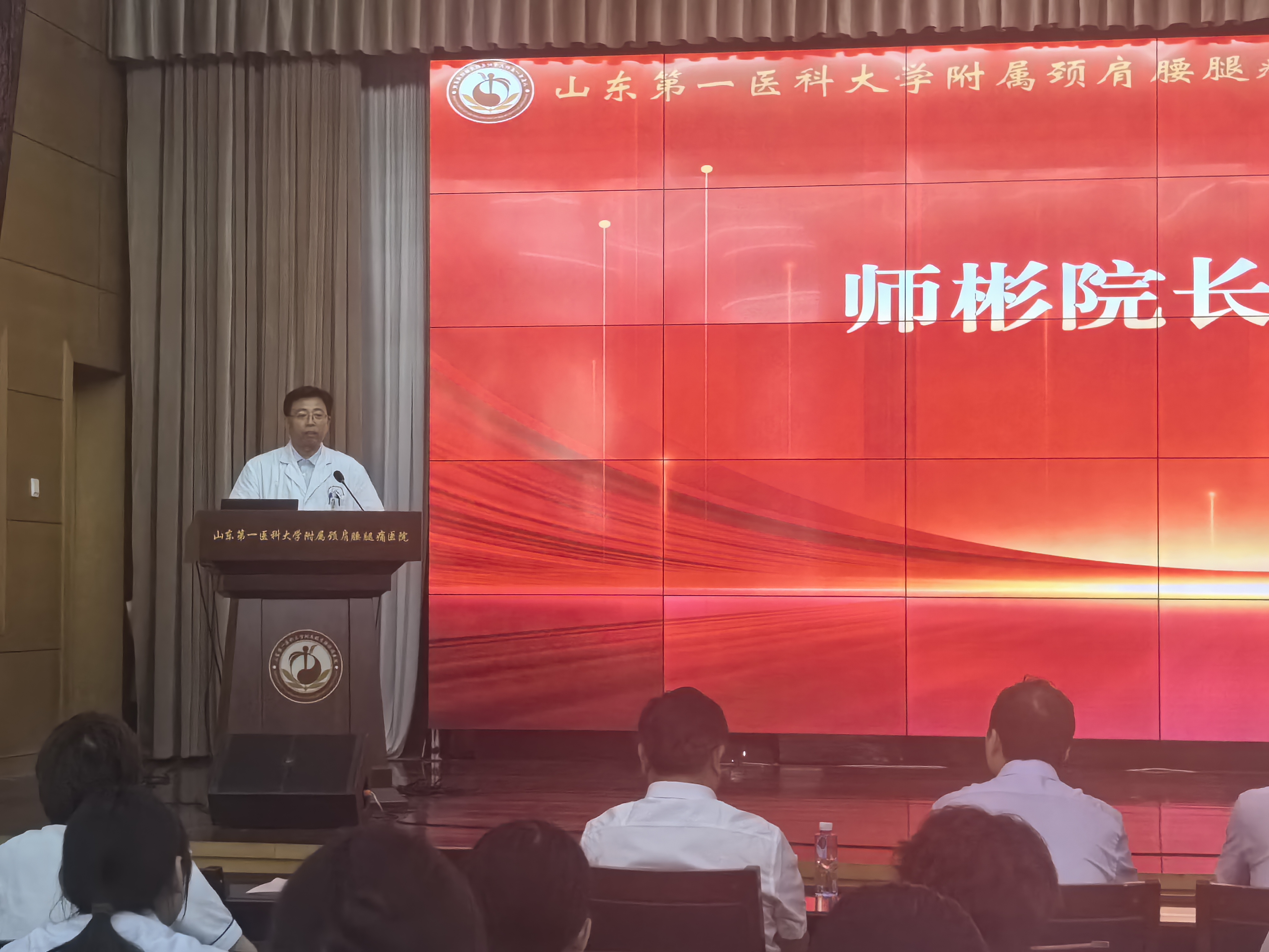 2025年8月19日,山东第一医科大学附属颈肩腰腿痛医院在综合楼学术报告厅召开了第八届中国医师节庆祝暨表彰大会,我院党委书记张洪彬、院长师彬出席会议并讲话。医院领导班子成员、临床医师代表、技师代表、研究生、实习生参加,会议由医务科副主任温雅主持。